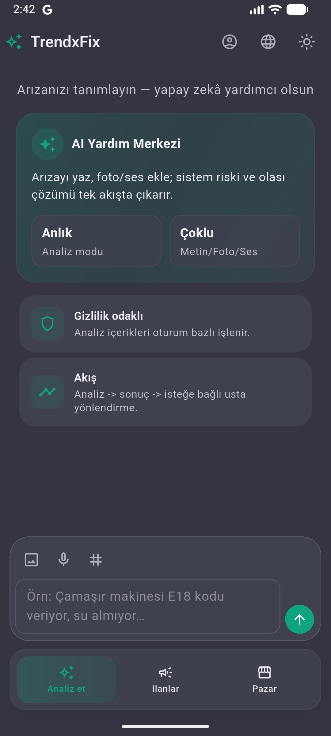 Ai destekli Tamir uygulaması Arıza Tespiti Usta Ayarlama Tedarikçi Bulma